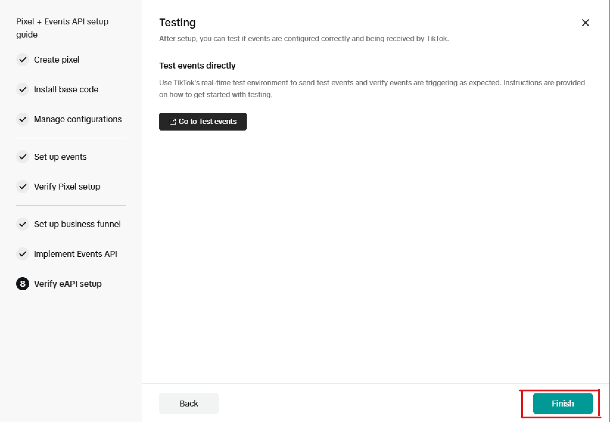 At the last step, please click on "Finish" button to send the request create a new pixel.