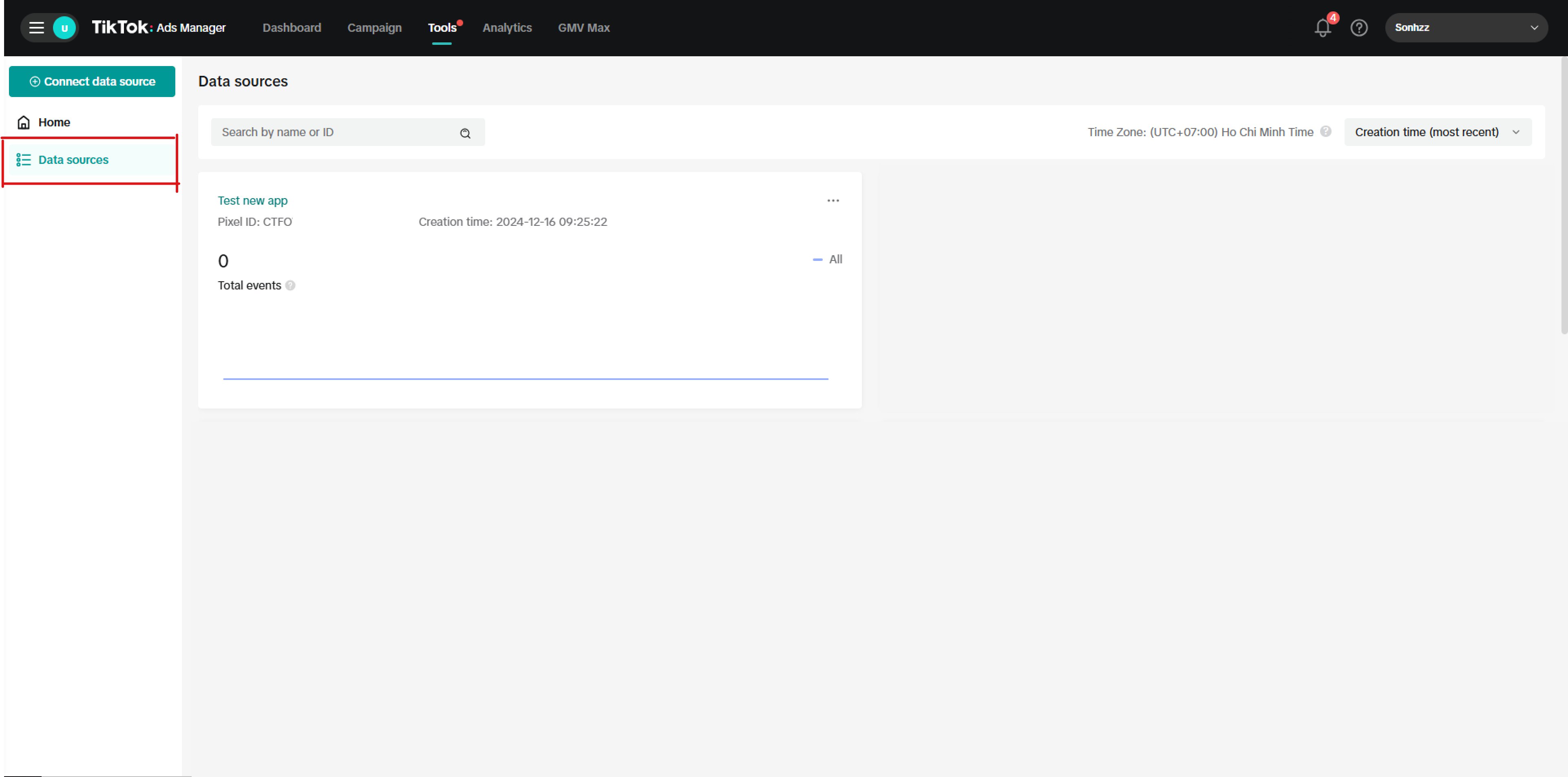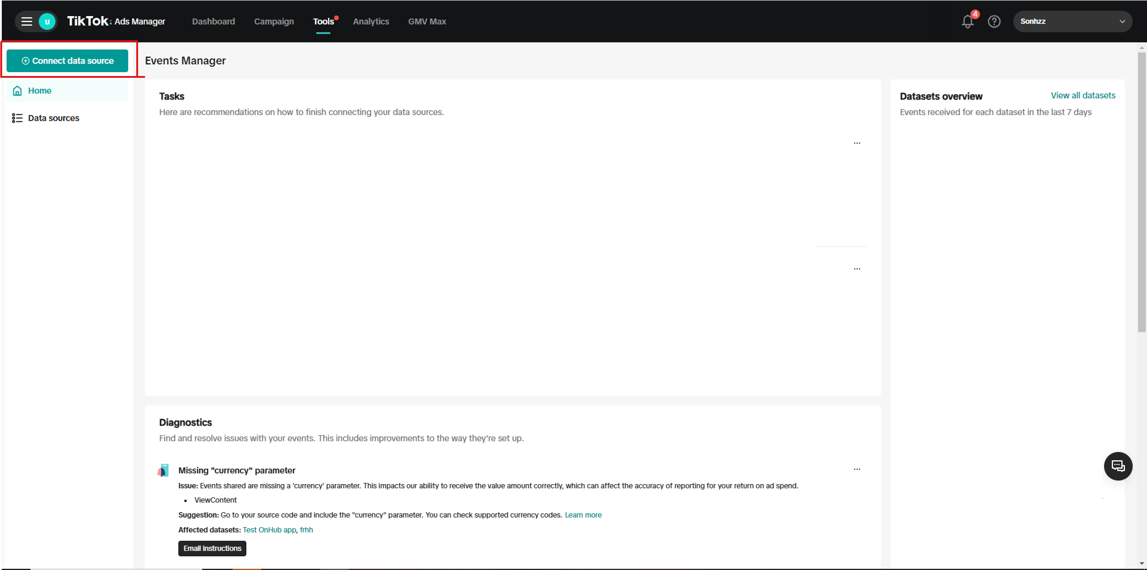 At Events Manager, click on "Connect data source" button.
