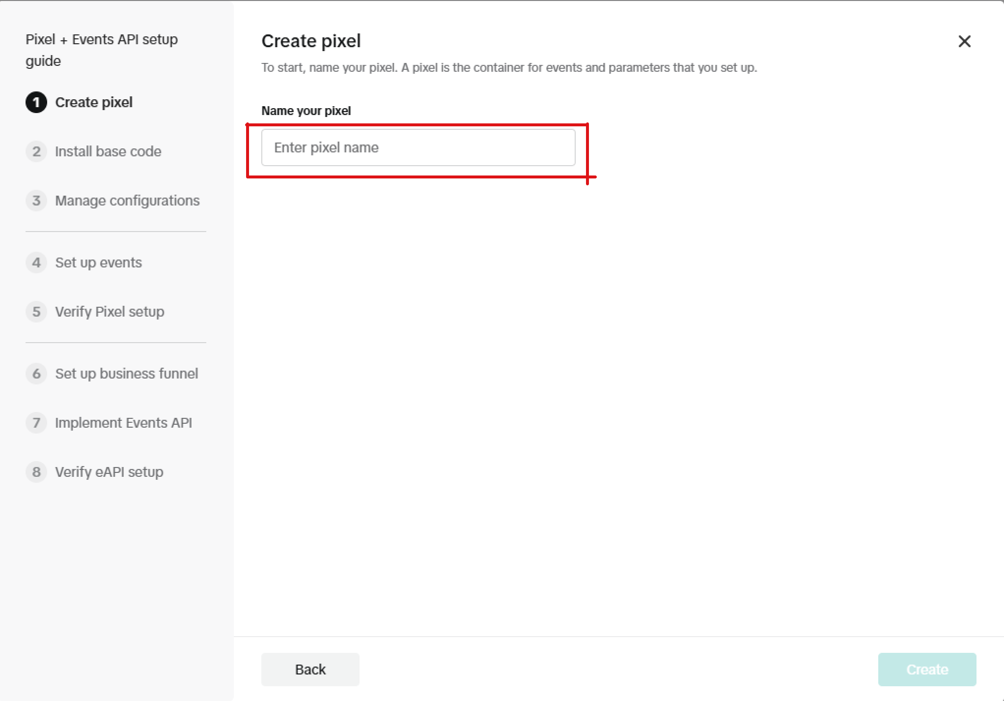 At this step, please enter the name you want to associate with this pixel.